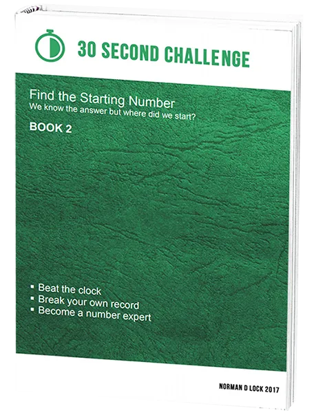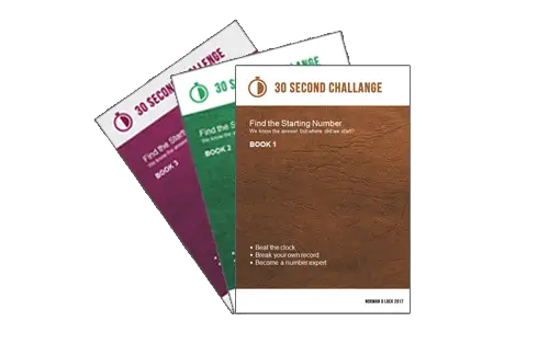 These books are different. They turn the 30 Second Challenges on their head! You see a short number trail and you are given the answer. You have to calculate where you started! They go from easy to interesting!